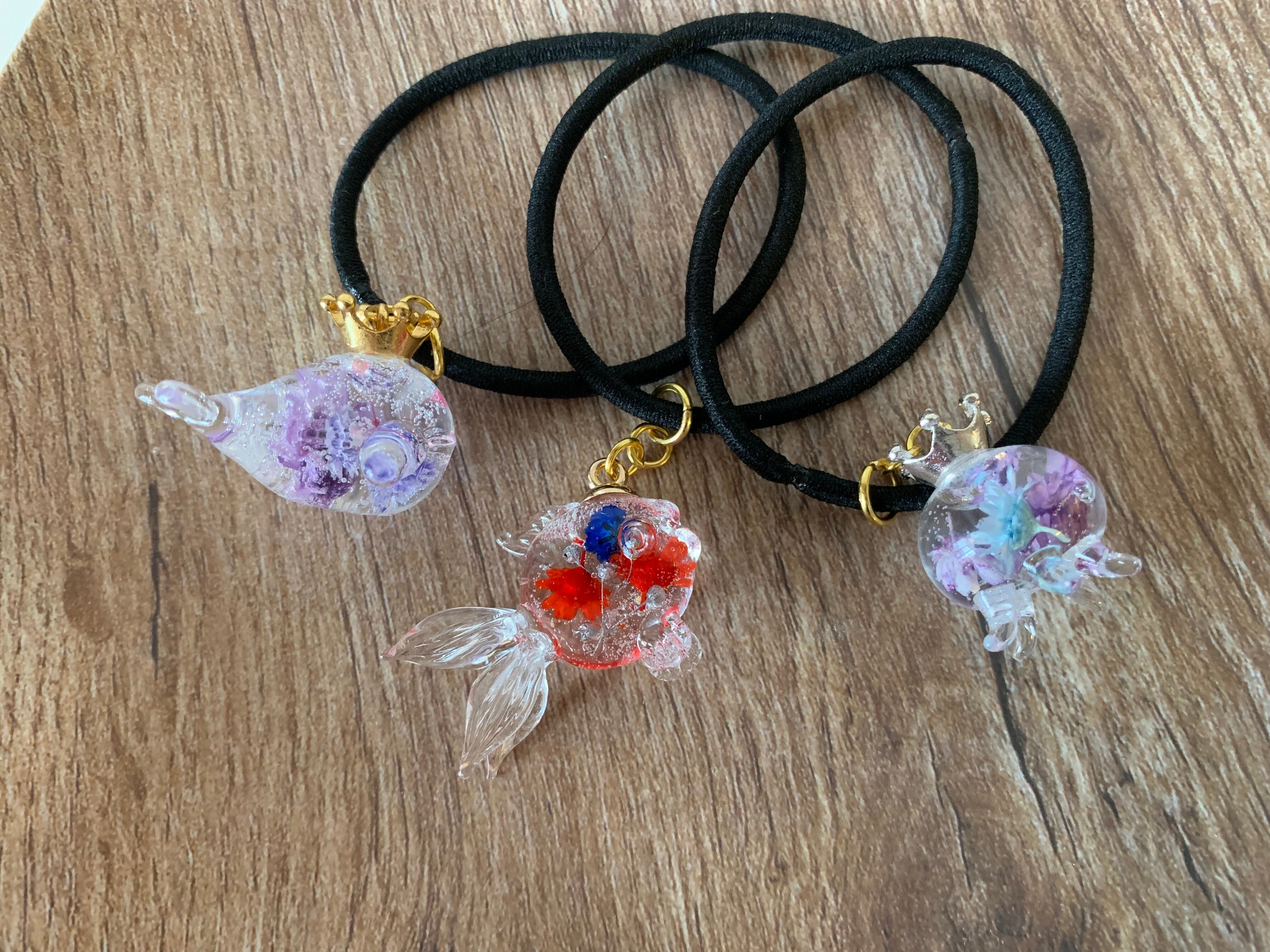 中のお花のカラーやガラスドームの形をお選び頂き、世界に1つしかないヘアゴムをお作り致します⑅︎◡̈︎*